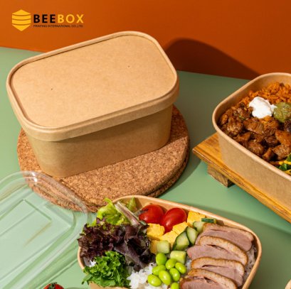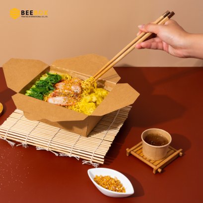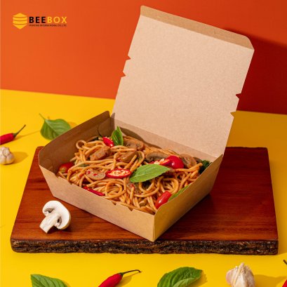 กล่องอาหารกระดาษคราฟท์ฝาทึบ 900ml ใส่อาหาร สลัด ผัดไท ข้าวมันไก่ กันมันกันซึม Foodgrade 1แพ็ค : 25ชิ้น