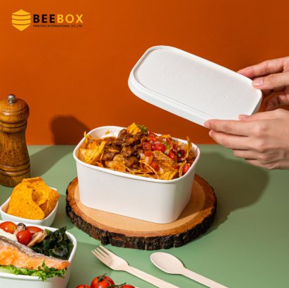 กล่องกลม กันน้ำมัน กันรั่วซึมเคลือบ PE เหมาะกับอาหารดิลิเวอรี่ สามารถแช่ตู้เย็นได้ ไซส์ M ขนาดเส้นผ่านศูนย์กลาง 16.1 ซม. สูง 6.6 ซม. บรรจุ : 1 แพค 25 ชุด / 1 ลัง 300 ชุด