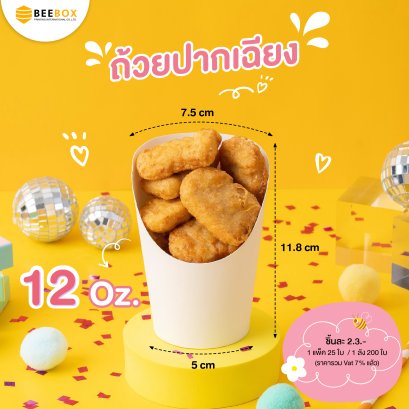 น้องทรงสูง ขนาด 12oz. ขนาดก้นกว้าง8cm ปากกว้าง9.6cm สูง7.5cm ใช้คู่กับ ฝากระดาษ จำหน่าย : 25ชิ้น/แพค