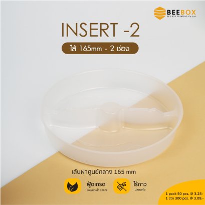 ไส้พลาสติก แยกอาหาร 2 ช่อง ขนาดเส้นผ่าศูนย์กลาง 16.5cm สามารถใส่กับน้องกล่องกลม L ขนาด 1100ml บรรจุ : 25ชิ้น/แพค 1 ลัง 200 ชิ้น **ราคาไม่รวมถ้วยและฝา**