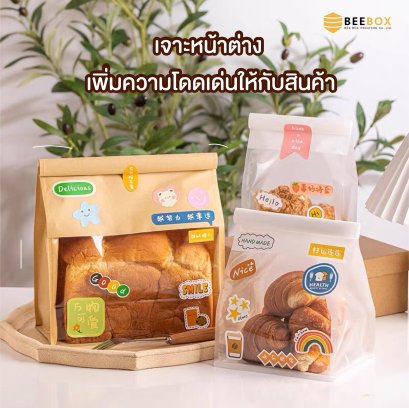 ถุงกระดาษเบเกอรี่ ขนมปัง ครัวซองต์ เบเกอรี่ เคลือบ PE Foodgrade เจาะหน้าต่าง ใช้งานสะดวก มีตัวล็อคในตัว สีน้ำตาลไซส์ M ขนาด 13x16x26cm 1 แพ็ค 50 ใบ