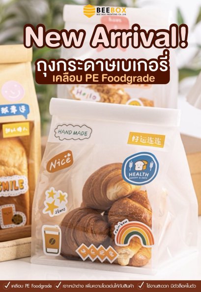 ถุงกระดาษเบเกอรี่ ขนมปัง ครัวซองต์ เบเกอรี่ เคลือบ PE Foodgrade เจาะหน้าต่าง ใช้งานสะดวก มีตัวล็อคในตัว สีขาว ไซส์ M ขนาด 13x16x26cm 1 แพ็ค 50 ใบ