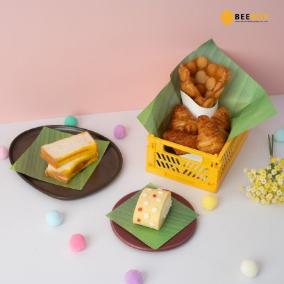 กระดาษรองลายใบตองเล็ก ขนาด 12*12 ซม. สามารถนำเข้าเตาอบได้ไม่เกิน 220 องศา