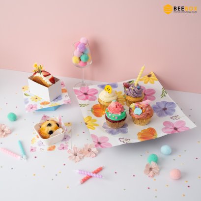 กระดาษรองลาย Floral เล็ก ขนาด 12*12 ซม. สามารถนำเข้าเตาอบได้ไม่เกิน 220 องศา