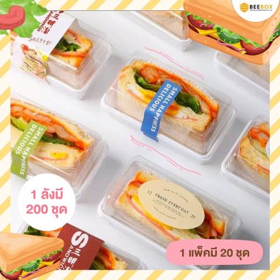 กล่องแซนวิส สี่เหลี่ยมผืนผ้า ผลิตจากพลาสติก Foodgrade ขนาด 6.3x12.5 สูง 6.5cm รวมฝาแล้ว 1 แพค 20 ชุด 1 ลัง 200 ชุด (มีราคาส่งด้วยนะคะ)