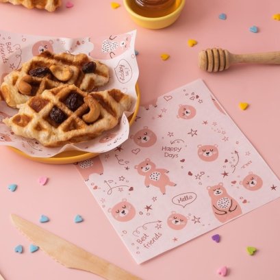 กระดาษรองลายหมีชมพู ขนาด 6*6 นิ้ว บรรจุ: 1แพ็ค:100 ใบ