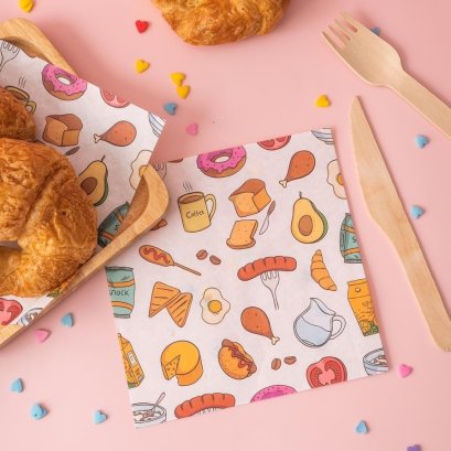 กระดาษรองลาย Breakfast ขนาด 6*6 นิ้ว บรรจุ: 1แพ็ค:100 ใบ