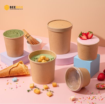 ถ้วยซุป ถ้วยไอศครีม ขนาด 8oz. ขนาดก้นกว้าง7.5cm ปากกว้าง9.6cm สูง6cm ฝากระดาษ ขนาดบรรจุ : 25ชิ้น/แพค & 200ชิ้น/ลัง