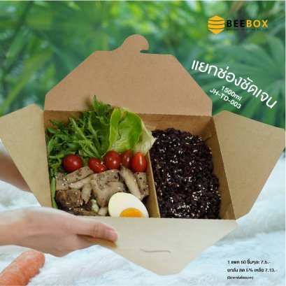 น้องสี่ฝา รักษ์โลกแบบ 2 ช่อง เข้าไมโครเวฟได้ ความจุ 1500ml ขนาด 15.5x18x4.6cm 1 แพค 25 ชิ้น 1 ลัง 200 ชิ้น